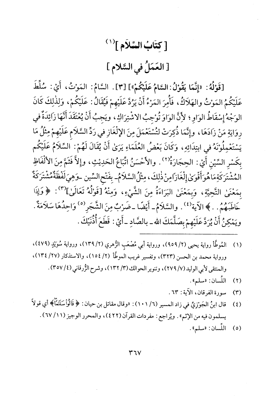 [قَوْلُهُ: "إِنَّمَا يقُوْلُ: السَّامُ عَلَيكُمْ"] [3]: السَّامُ: المَوْتُ، أَي: سُلِّطَ عَلَيكُمُ المَوْتُ والهَلاكُ، فَأُمِرَ المَرْء أَنْ يَرُدَّ عَلَيهِمْ فَيقالُ: عَلَيكُمْ، وَلِذلِكَ كَانَ الوَجْهُ إِسْقَاطُ الوَاو؛ لأنَّ الوَاوَ تُوْجِبُ الاشْتِرَاكِ، ويَجِبُ أَنْ يُعْتَقَدَ أَنّهَا زَائِدَةٌ في رِوَايَةِ مَنْ زَادَهَا، وإِنَّمَا ذُكِرَتْ لتُسْتَعْمَلَ مِنَ الألْغَازِ في رَدِّ السَّلامِ عَلَيهِمْ مِثْلُ مَا يَسْتَعْمِلُوْنَهُ في ابتِدَائِهِ، وَكَانَ بَعْضُ العُلَمَاءِ يَرَى أَنْ يُقَال لَهُمْ: السِّلامُ عَلَيكُم بِكَسْرِ السِّينِ أَي: الحِجَارَةُ (¬2). والأحْسَنُ اتِّبَاعُ الحَدِيثِ، وإِلَّا فَثَمَّ مِنَ الألْفَاظِ المُشْتَرَكَةِ مَا هُوَ أَقْوَى إِلْغَازًا مِنْ ذلِكَ، مِثْلُ السَّلامُ -بِفَتْحِ السين- وَهِيَ لَفْظَةٌ مُشْتَرَكَةٌ بِمَعْنَى التَّحِيَّةِ، وَبِمَعْنَى البَرَاءَةُ مِنَ الشَّيءِ، وَمِنْهُ [قَوْلُهُ تَعَالى] (¬3): {وَإِذَا خَاطَبَهُمُ .. } الآية (¬4). والسَّلامُ -أَيضًا- ضَرْبٌ مِنَ الشَّجَرِ (¬5) وَاحِدُهَا سَلامَةٌ. ويَمْكِنُ أَنْ يُرَدَّ عَلَيهِمْ بِصَلَّمَكَ الله -بالصَّادِ- أَي: قَطَعَ أُذُنَيكَ.