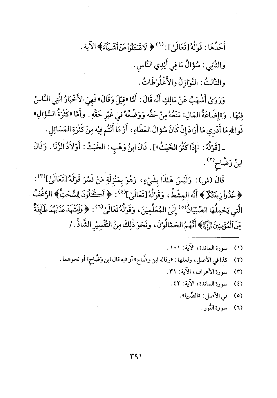 قَال (من): وَلَيسَ هَذَا بِشَيءٍ، وَهُوَ بِمَنْزِلَةِ مَنْ فَسَّرَ قَوْلَهُ [تَعَالى] (¬3): {خُذُوا زِينَتَكُمْ} أَنّه المِشْطُ، وَقَوْلُهُ [تَعَالى] (¬4): {أَكَّالُونَ لِلسُّحْتِ} الرُّغُفُ الّتي يَحْمِلُهَا الصِّبْيَانُ (¬5) إِلَى المُعَلِّمِينَ، وَقَوْلُهُ تَعَالى (¬6): {وَلْيَشْهَدْ عَذَابَهُمَا طَائِفَةٌ مِنَ الْمُؤْمِنِينَ (2)} أنَّهُمُ الحَمَّالُوْنَ، ونَحْوَ ذلِكَ مِنَ التفسِيرِ الشَّاذِّ.