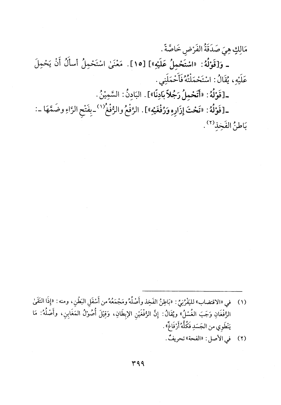 (¬1) في "الاقتضاب" لليَفْرُنِيِّ: "بَاطِنُ الفَخِذ وأَصْلُهُ ومَجْمَعُهُ من أَسْفَلِ البَطْنِ، ومنه: "إِذَا التَقَى الرُّفْعَانِ وَجَبَ الغُسْلُ" ويُقَالُ: إِنَّ الرُّفْغَينِ الإبِطَانِ، وَقِيلَ أُصُوْلُ المَغَابِنِ، وأَصْلُهُ: مَا يَنْطَوي من الجَسَدِ فَكُلُّهُ أَرْفَاغٌ".