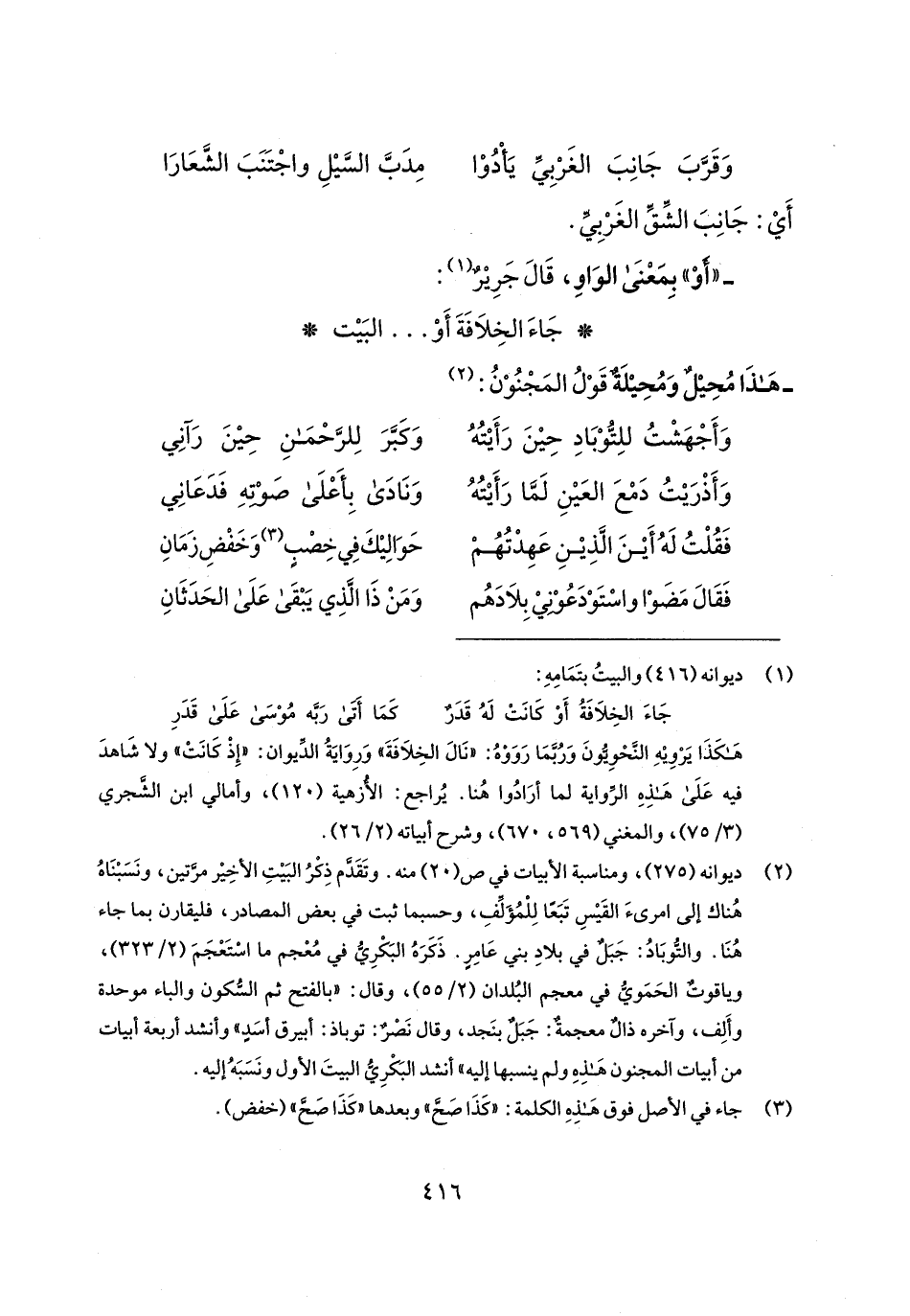 (¬1) ديوانه (416) والبيتُ بتمَامِهِ: