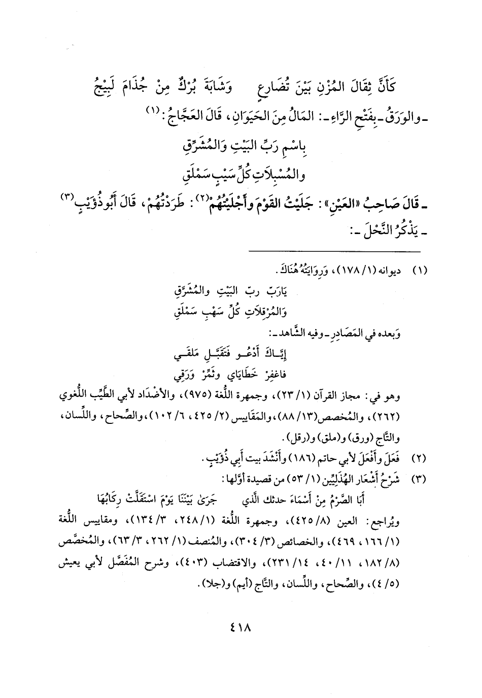 (¬2) فَعَلَ وأَفْعَلَ لأبي حاتم (186) وأَنْشَدَ بيت أَبِي ذُؤَيب.