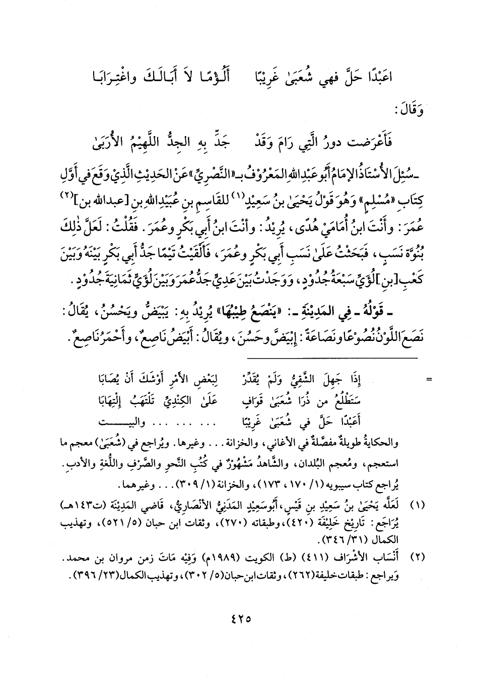 والحكايةُ طويلةٌ مفصَّلة في الأغاني، والخزانة ... وغيرها. ويُراجع في (شُعَبَى) معجم ما استعجم, ومُعجم البُلدان، والشَّاهد مَشْهُوْرٌ في كتُبِ النَّحو والصَّرْفِ واللُّغةِ والأدبِ.