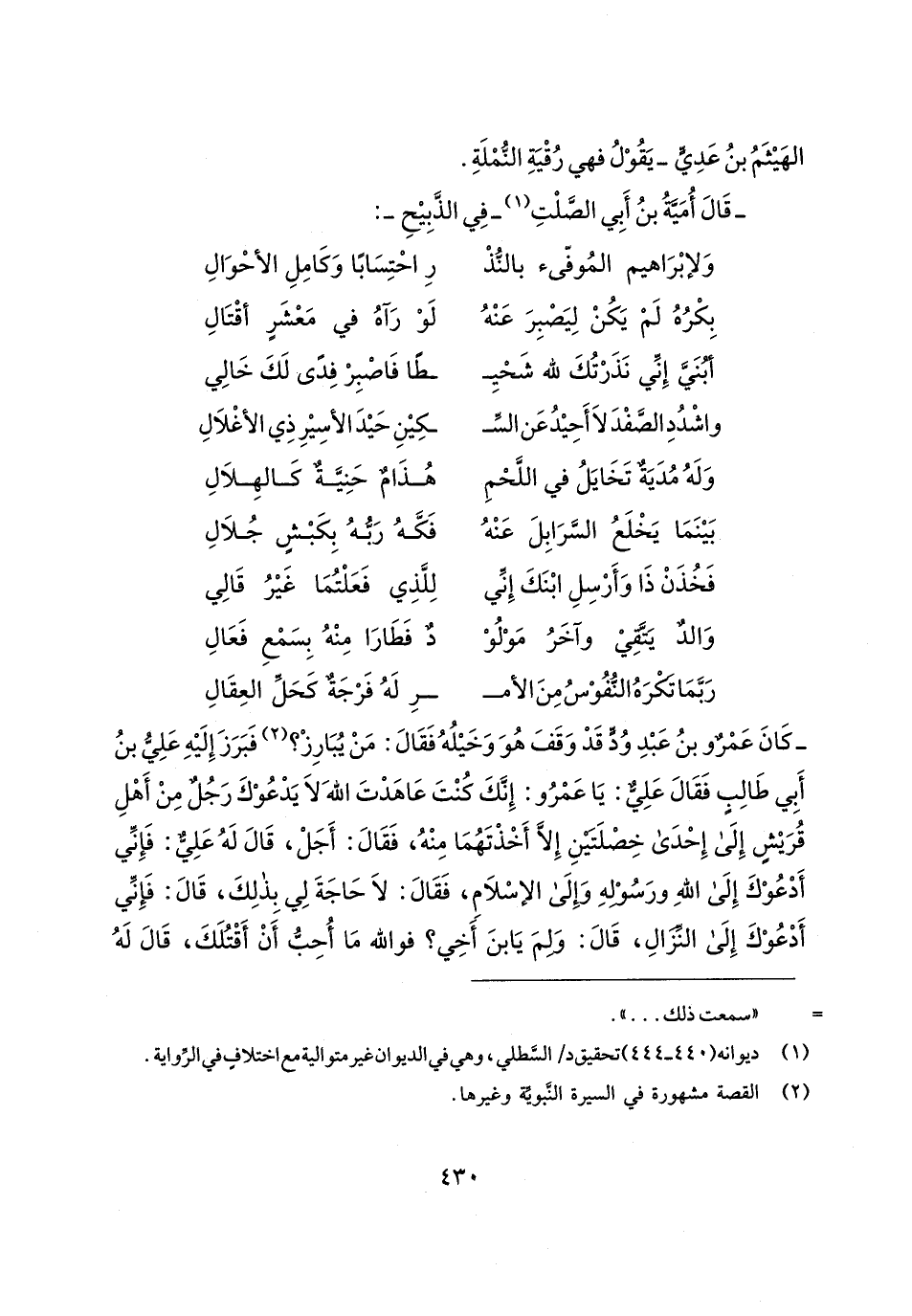 - قَال أُمَيةُ بنُ أَبِي الصَّلْتِ (¬1) -في الذَّبِيحِ-: