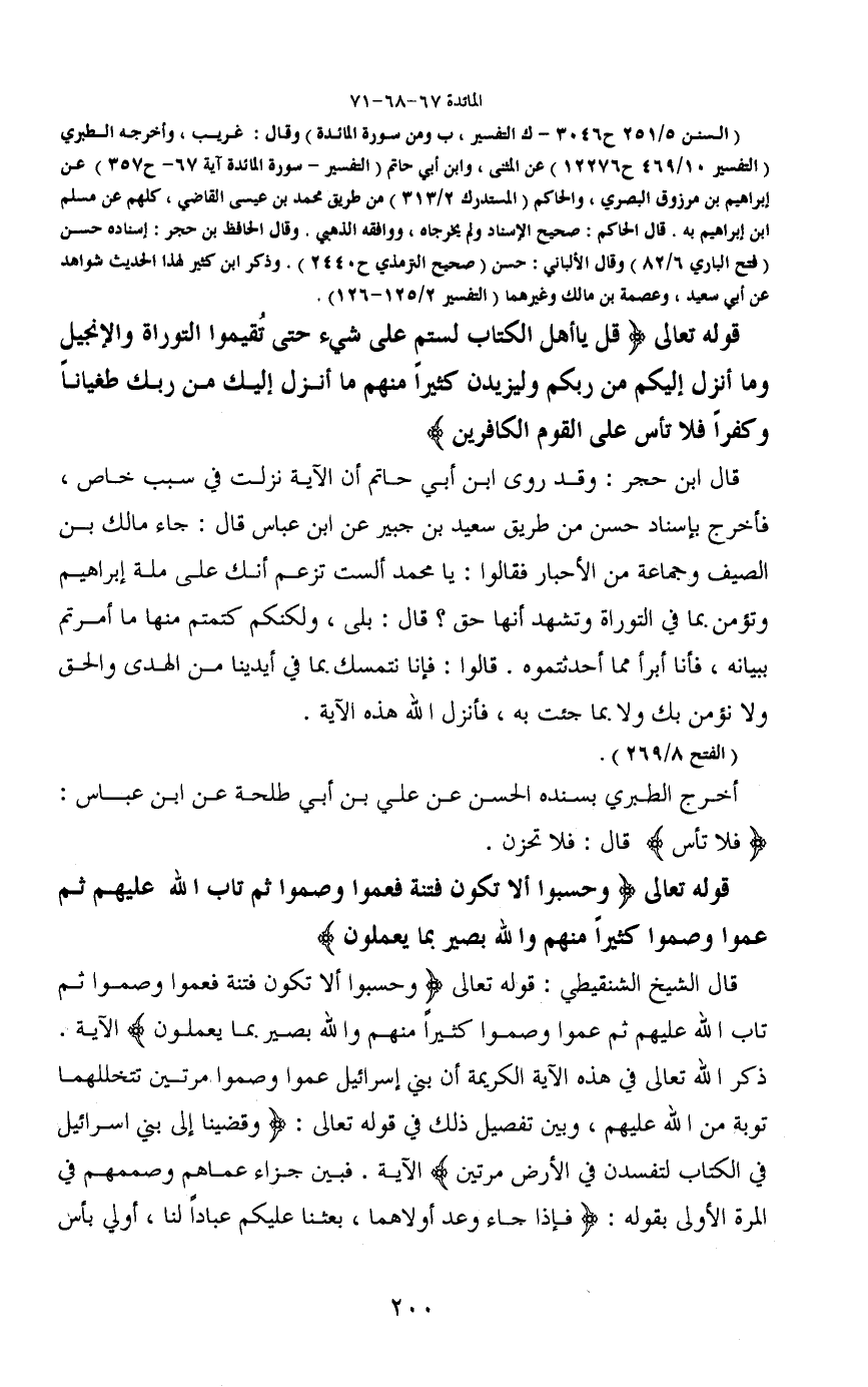قوله تعالى (قل يا أهل الكتاب لستم على شيء حتى تقيموا التوراة والإنجيل وما أنزل إليكم من ربكم وليزيدن كثيراً منهم ما أنزل إليك من ربك طغياناً وكفراً فلا تأس على القوم الكافرين)