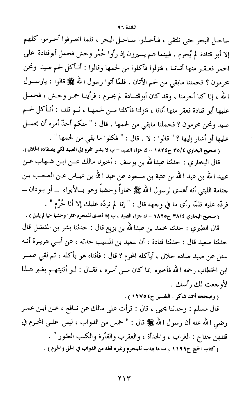 (صحيح البخاري 4/35 ح 1824 -ك جزاء الصيد- ب لا يشير المحرم إلى الصيد لكى يصطاده الحلال) .