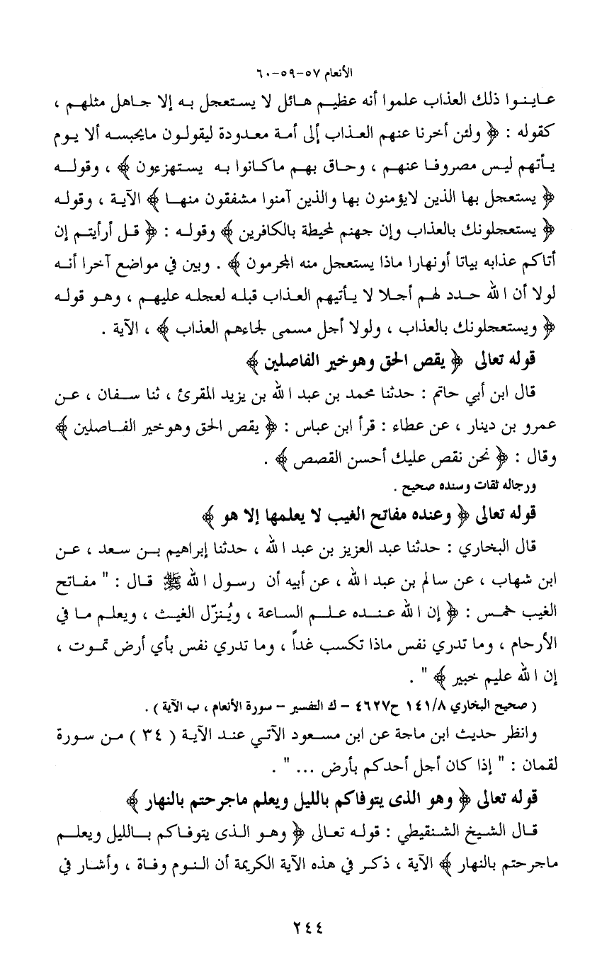 قوله تعالى (وعنده مفاتح الغيب لا يعلمها إلا هو)