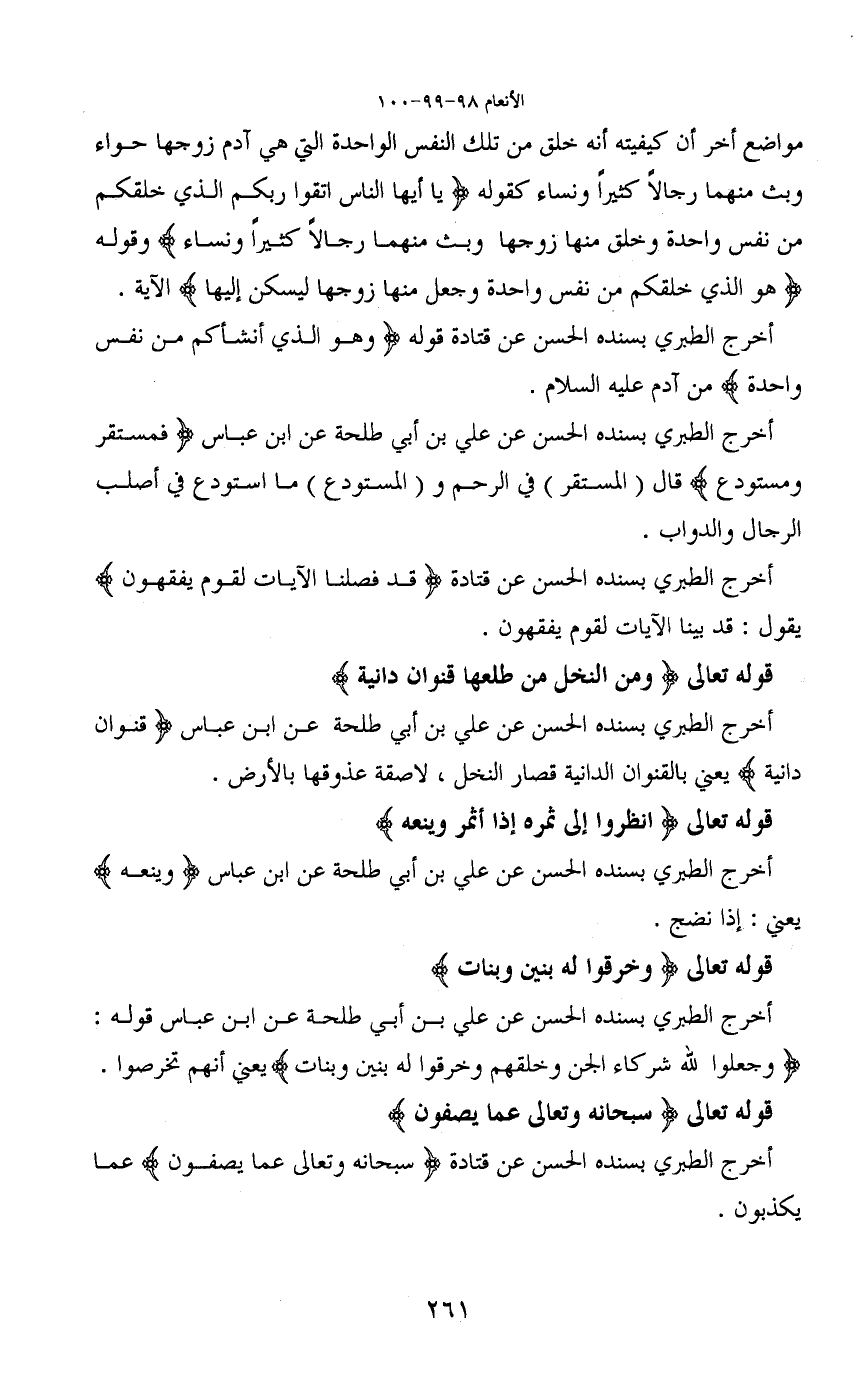 أخرج الطبري بسنده الحسن عن قتادة قوله (وهو الذي أنشأكم من نفس واحدة) من آدم عليه السلام.