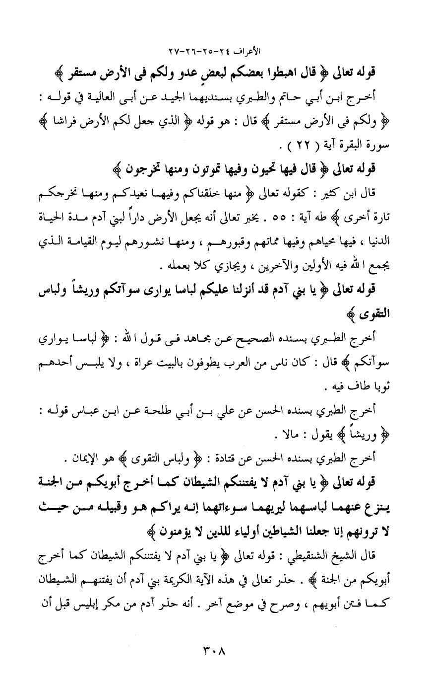 قال الشيخ الشنقيطي: قوله تعالى (يا بني آدم لا يفتننكم الشيطان كما أخرج أبويكم من الجنة) . حذر تعالى في هذه الآية الكريمة بني آدم أن يفتنهم الشيطان كما فتن أبويهم، وصرح في موضع آخر. أنه حذر آدم من مكر إبليس قبل أن