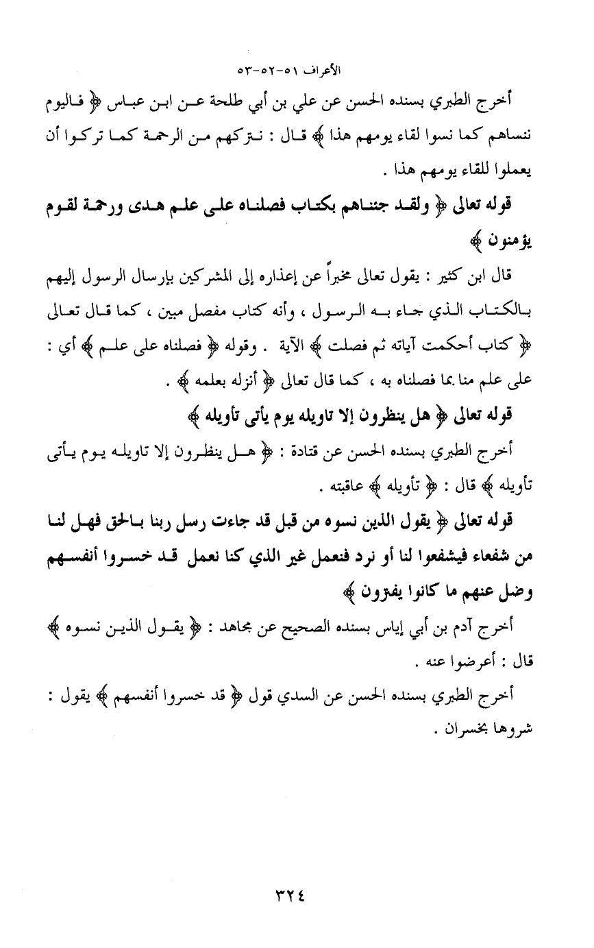 قوله تعالى (ولقد جئناهم بكتاب فصلناه على علم هدى ورحمة لقوم يؤمنون)