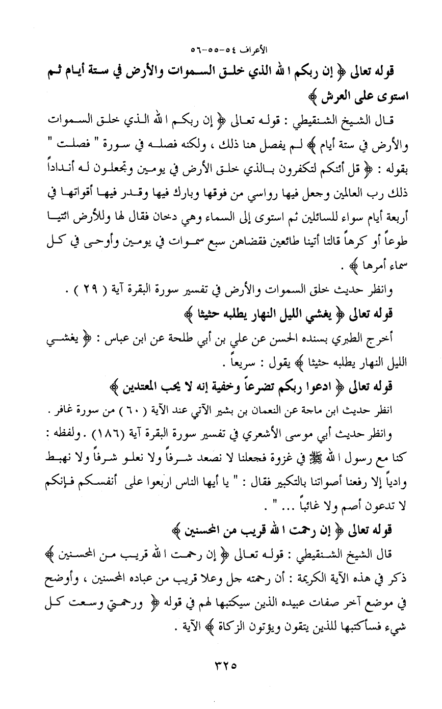 قال الشيخ الشنقيطي: قوله تعالى (إن رحمت الله قريب من المحسنين) ذكر في هذه الآية الكريمة: أن رحمته جل وعلا قريب من عباده المحسنين، وأوضح في موضع آخر صفات عبيده الذين سيكتبها لهم في قوله (ورحمتي وسعت كل شيء فسأكتبها للذين يتقون ويؤتون الزكاة) الآية.