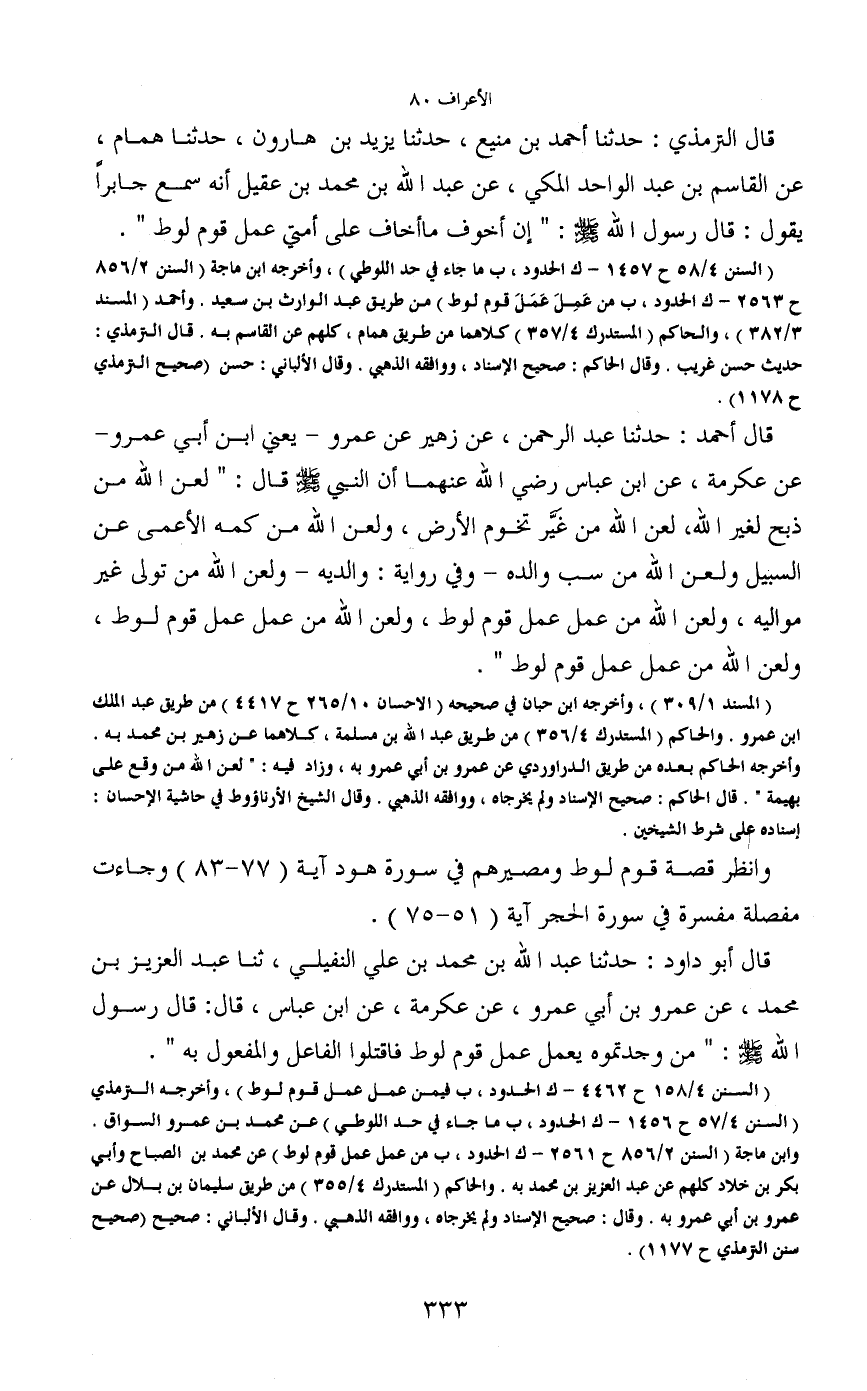(السنن 4/58 ح 1457 - ك الحدود، ب ما جاء في حد اللوطي) ، وأخرجه ابن ماجة (السنن 2/856 ح 2563 - ك الحدود، ب من عَمِلَ عَمَلَ قوم لوط) من طريق عبد الوارث بن سعيد. وأحمد (المسند 3/382) ، والحاكم (المستدرك 4/357) كلاهما من طريق همام، كلهم عن القاسم به. قال الترمذي: حديث حسن غريب. وقال الحاكم: صحيح الإسناد، ووافقه الذهبي. وقال الألباني: حسن (صحيح الترمذي ح 1178) .