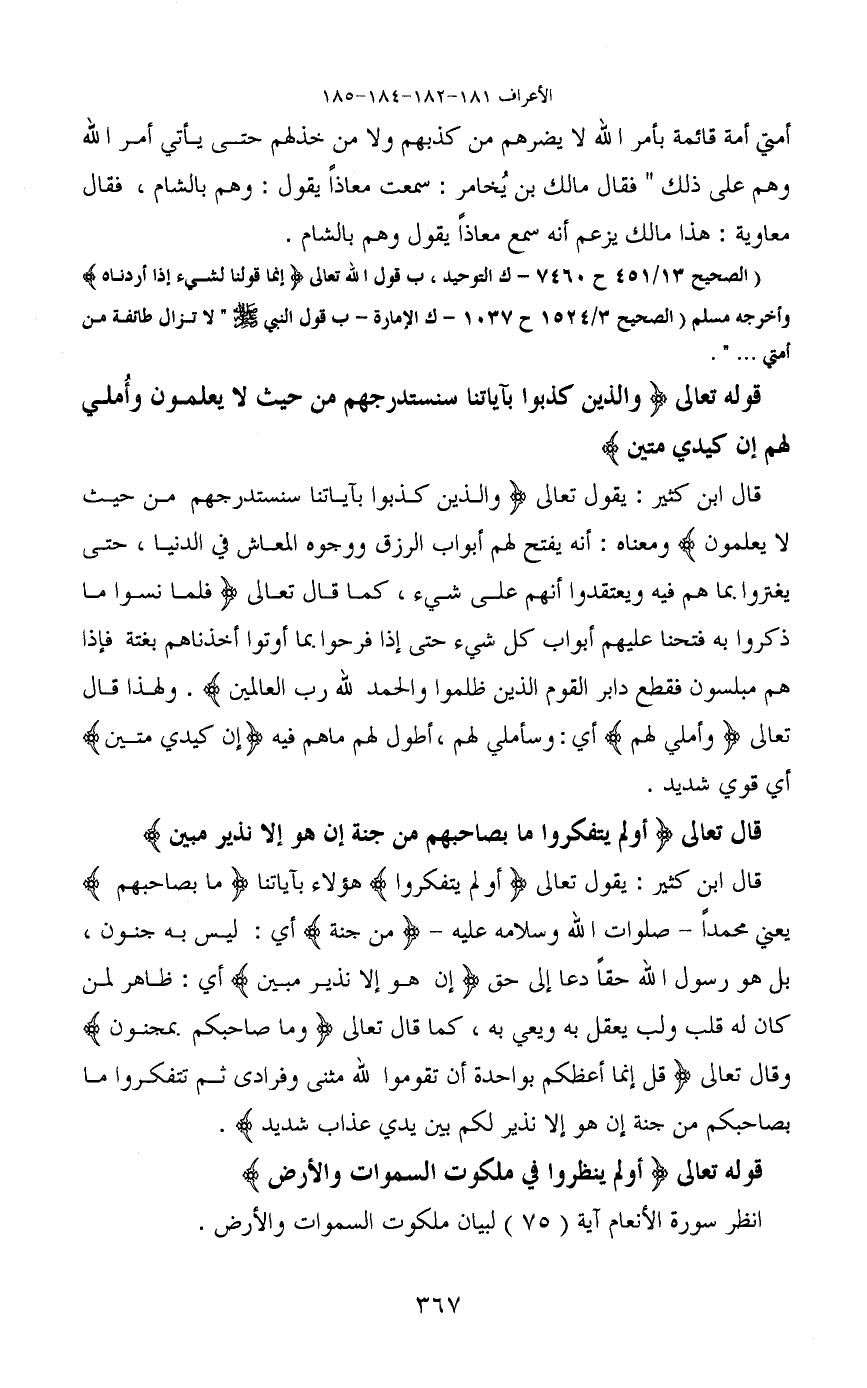 قوله تعالى (والذين كذبوا بآياتنا سنستدرجهم من حيث لا يعلمون وأملي لهم إن كيدي متين)