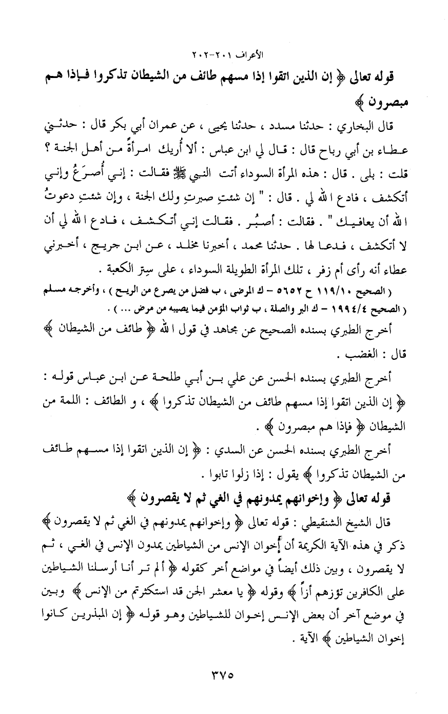 قوله تعالى (إن الذين اتقوا إذا مسهم طائف من الشيطان تذكروا فإذا هم مبصرون)
