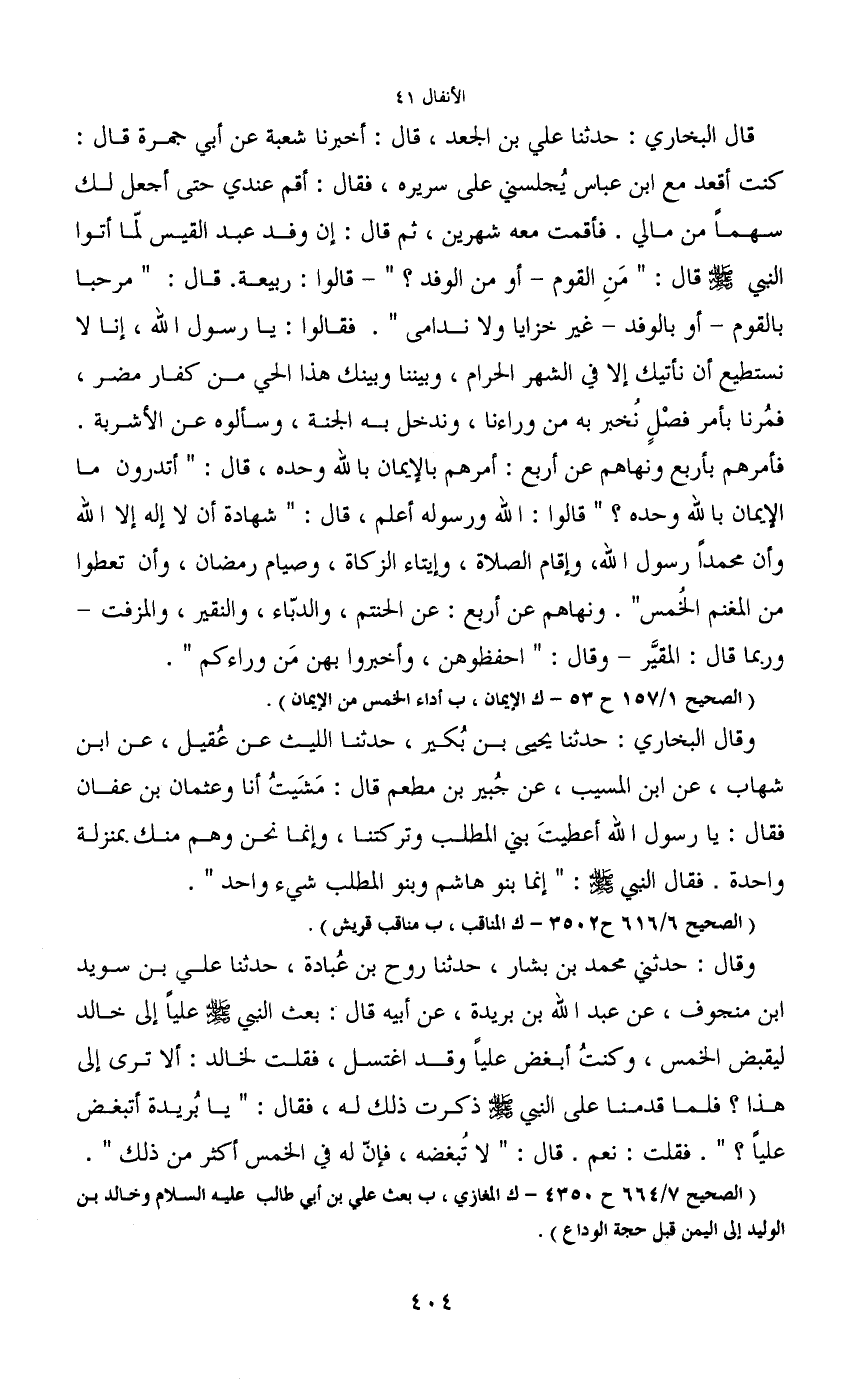 (الصحيح 1/157 ح 53 - ك الإيمان، ب أداء الخمس من الإيمان) .