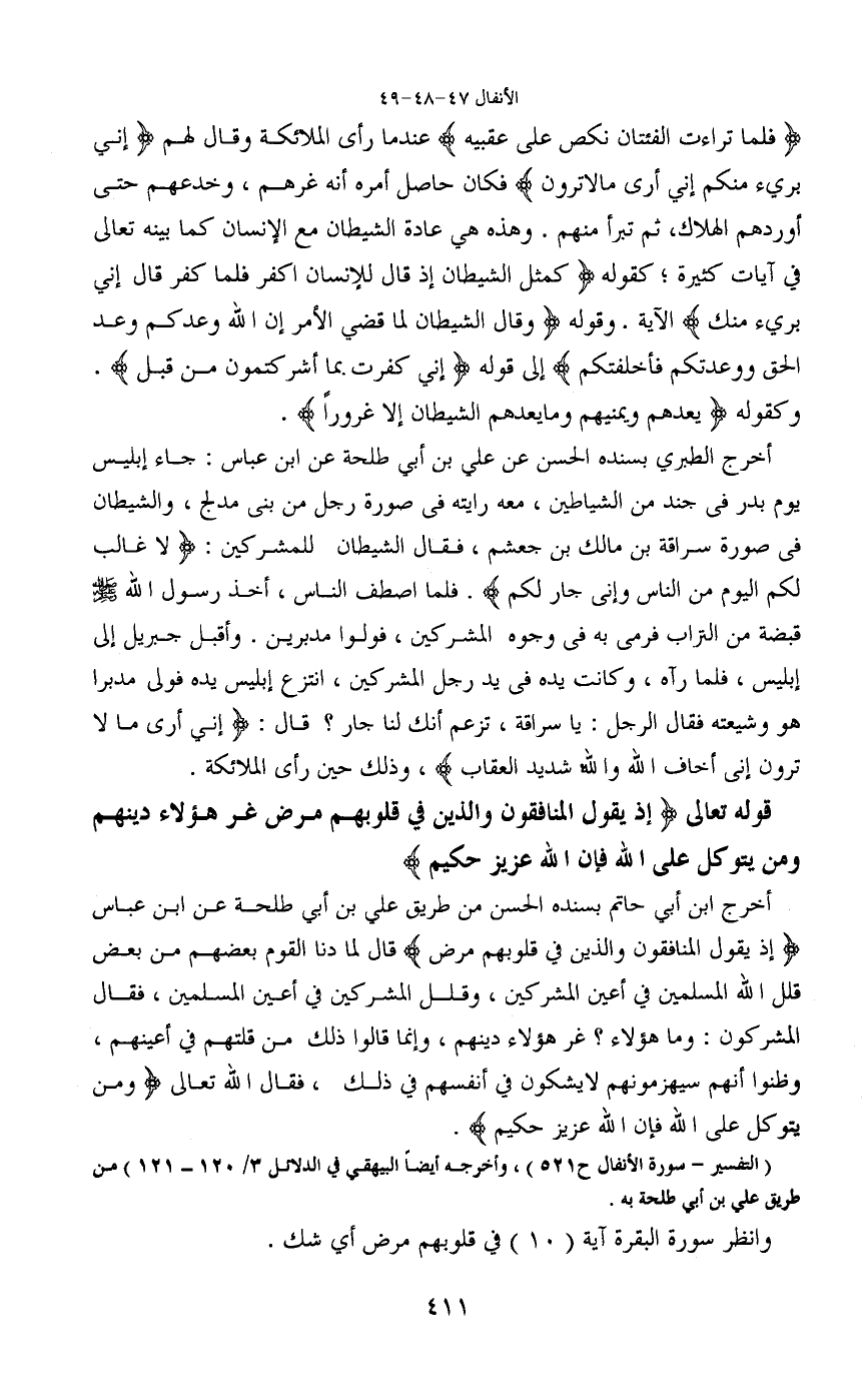 (التفسير - سورة الأنفال ح 521) ، وأخرجه أيضاً البيهقي في الدلائل 3/120-121) من طريق علي بن أبي طلحة به.