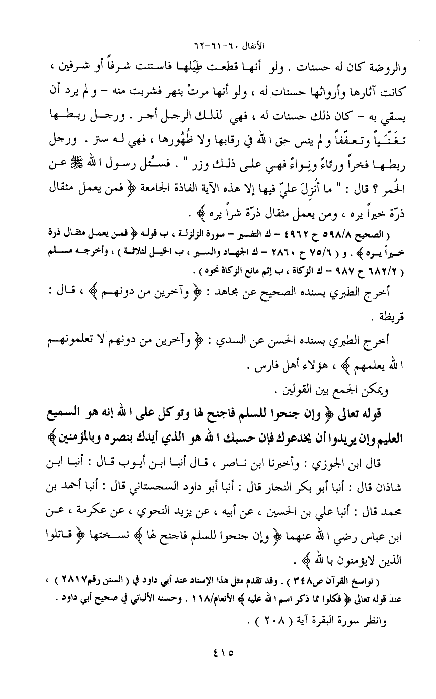 قوله تعالى (وإن جنحوا للسلم فاجنح لها وتوكل على الله إنه هو السميع العليم وإن يريدوا أن يخدعوك فإن حسبك الله هو الذي أيدك بنصره وبالمؤمنين)