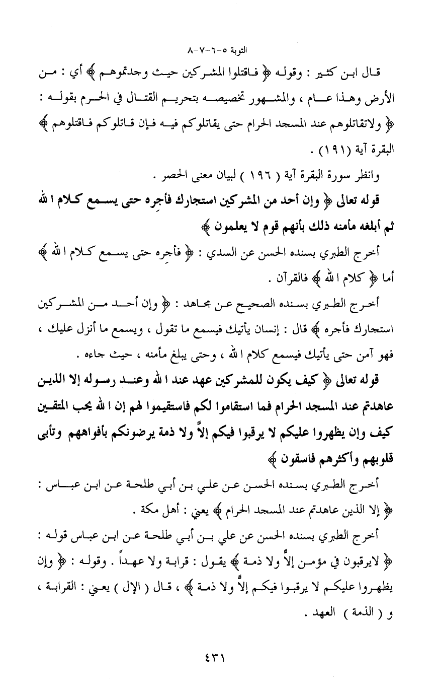 أخرج الطبري بسنده الصحيح عن مجاهد: (وإن أحد من المشركين استجارك فأجره) قال: إنسان يأتيك فيسمع ما تقول، ويسمع ما أنزل عليك، فهو آمن حتى يأتيك فيسمع كلام الله، وحتى يبلغ مأمنه، حيث جاءه.