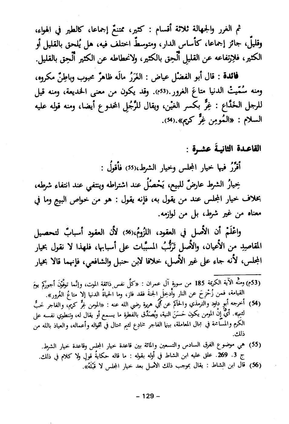 (٥٦) قال ابن الشاط: يقال بموجب ذلك الاصل بعد خيار المجلس لا قَبْلَهُ".
