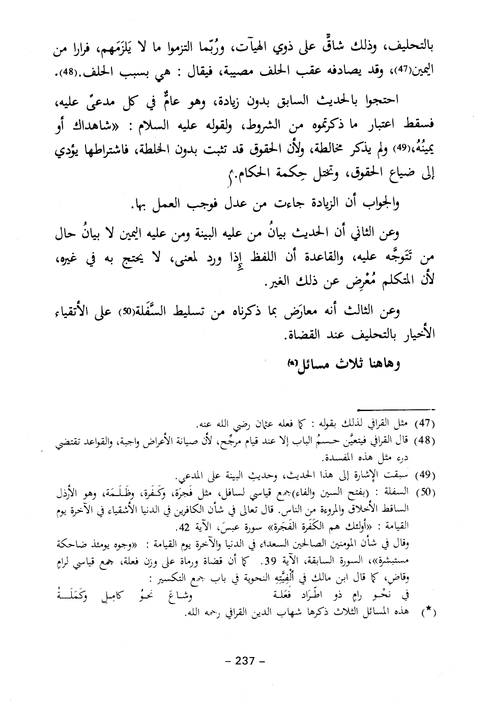 (*) هذه المسائل الثلاث ذكرها شهاب الدين القرافي رحمه الله.
