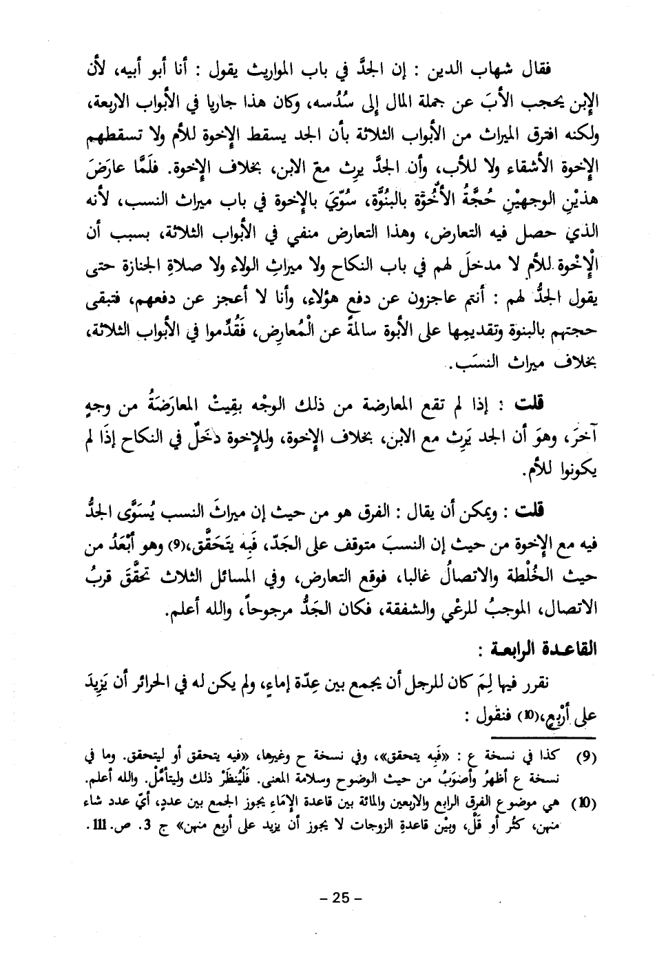 (١٠) هي موضوع الفرق الرابع والاربعين والمائة بين قاعدة الإِمَاءِ يجوز الجمع بين عدد أيّ عدد شاء منهن، كثُر أو قَلَّ، وبين قاعدةِ الزوجات لا يجوز أن يزيد على أربع منهن" جـ ٣. ص. ١١١.