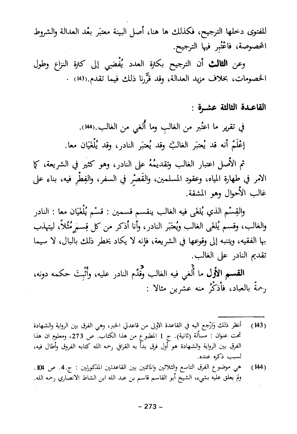 في تقرير ما اعتُبر من الغالبِ وما أُلغي من الغالب. (١٤٤).