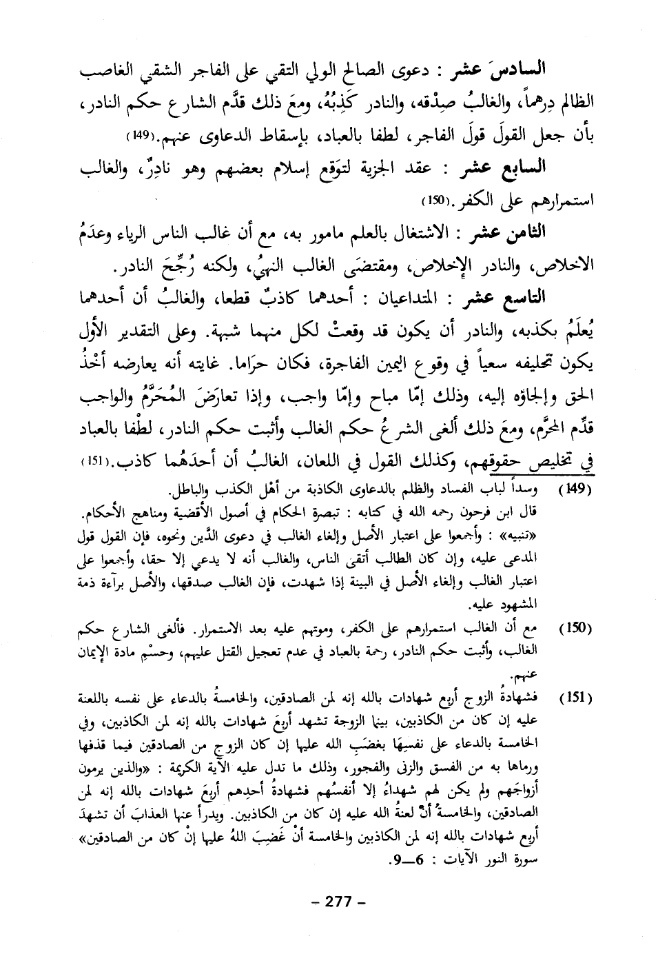 (١٤٩) وسداً لباب الفساد والظلم بالدعاوى الكاذبة من أهْل الكذب والباطل.