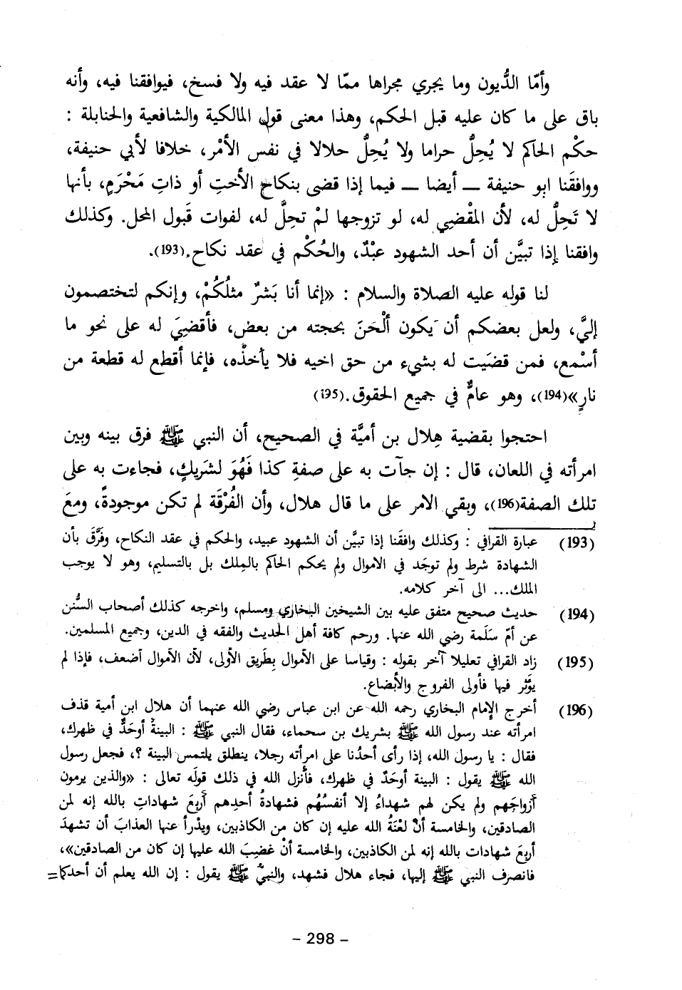 (١٩٣) عبارة القرافي: وكذلك وافقَنا إذا تبين أن الشهود عبيد، والحكم في عقد النكاح، وفرق بأن الشهادة شرط ولم توجَد في الاموال ولم يحكم الحاكم بالمِلك بل بالتسليم، وهو لا يوجب الملك ... إلى آخر كلامه.
