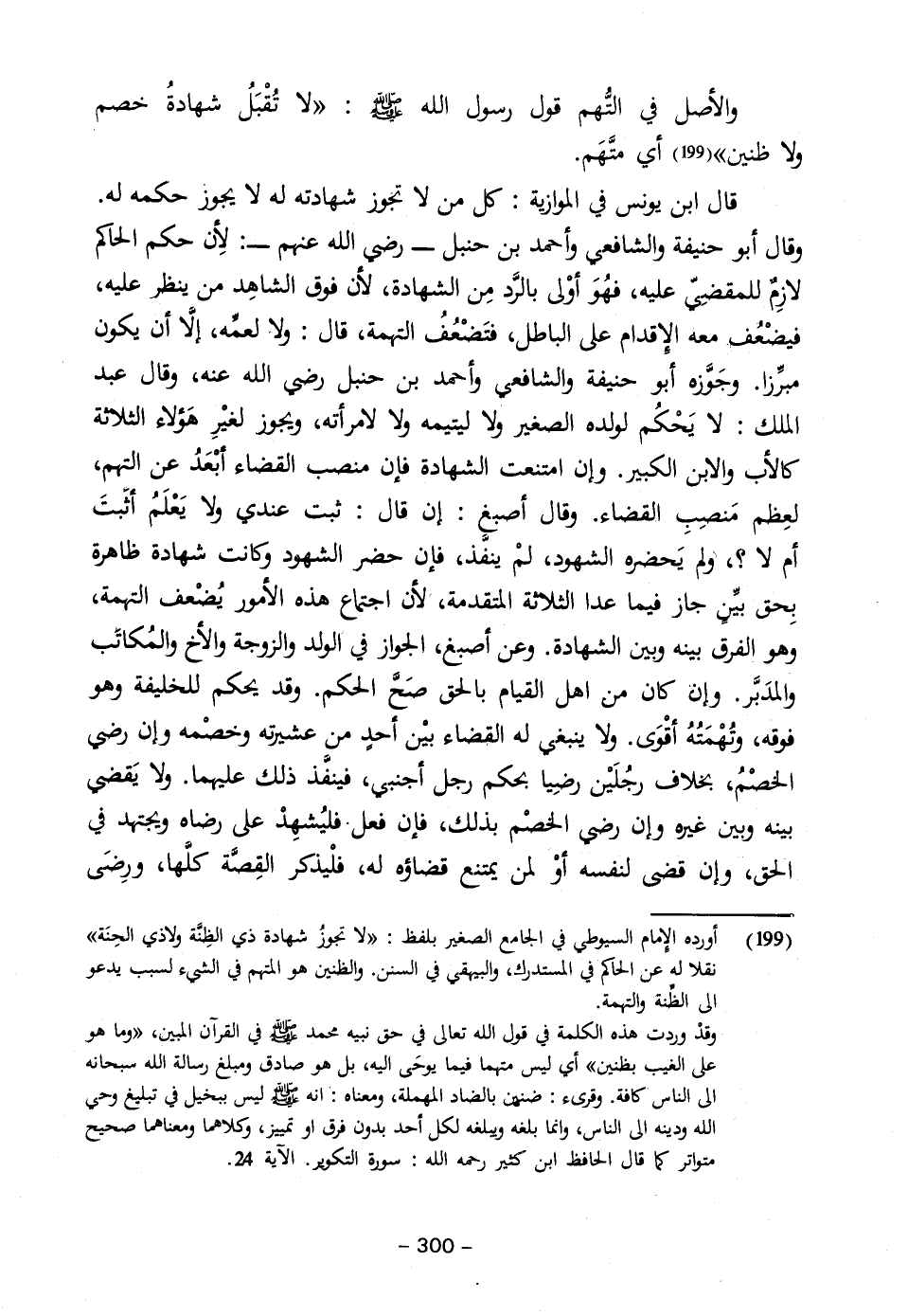 (١٩٩) أورده الإِمام السيوطي في الجامع الصغير بلفظ: "لا تجوزُ شهادة ذي الظِنَّة ولا ذي الحِنَة" نقلا له عن الحاكم في المستدرك، والبيهقي في السنن. والظنين هو المتهم في الشيء لسبب يدعو إلى الظّنة والتهمة.