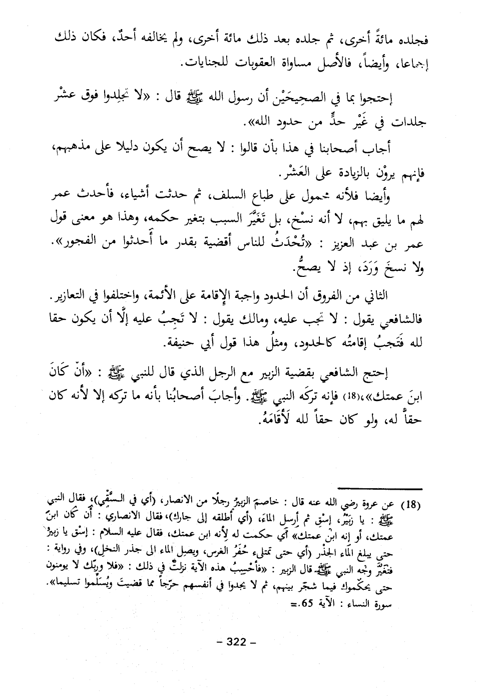 إحتج الشافعي بقضية الزبير مع الرجل الذي قال للنبي - صلى الله عليه وسلم -: "أن كَانَ ابنَ عمتك"، (١٨) فإنه تركَه النبي - صلى الله عليه وسلم -. وأجابَ أصحابُنا بأنه ما تركه إلا لأنه كان حقاّ له، ولو كان حقاً لله لَأقَامَهُ.