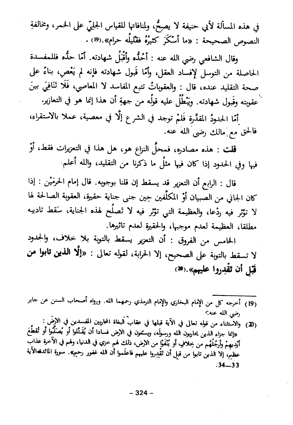 (٢٠) والاستثناء من قوله تعالى في الآية قبلها في عقاب البغاة المحاربين المفسدين في الارض: {إِنَّمَا جَزَاءُ الَّذِينَ يُحَارِبُونَ اللَّهَ وَرَسُولَهُ وَيَسْعَوْنَ فِي الْأَرْضِ فَسَادًا أَنْ يُقَتَّلُوا أَوْ يُصَلَّبُوا أَوْ تُقَطَّعَ أَيْدِيهِمْ وَأَرْجُلُهُمْ مِنْ خِلَافٍ أَوْ يُنْفَوْا مِنَ الْأَرْضِ ذَلِكَ لَهُمْ خِزْيٌ فِي الدُّنْيَا وَلَهُمْ فِي الْآخِرَةِ عَذَابٌ عَظِيمٌ (٣٣) إِلَّا الَّذِينَ تَابُوا مِنْ قَبْلِ أَنْ تَقْدِرُوا عَلَيْهِمْ فَاعْلَمُوا أَنَّ اللَّهَ غَفُورٌ رَحِيمٌ} سورة المائدة الآية ٣٤ - ٣٣.