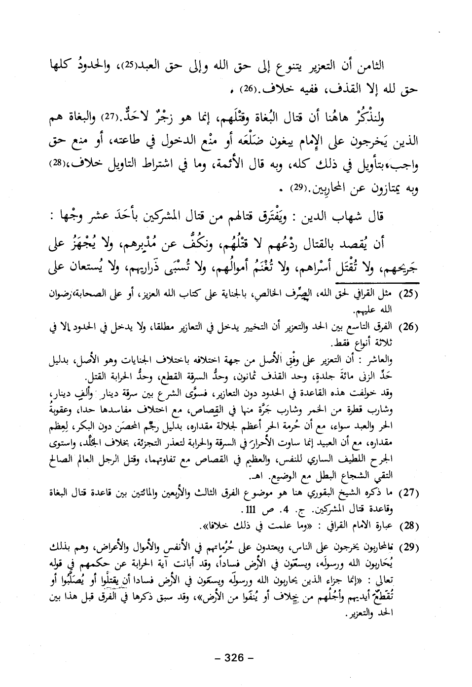 (٢٧) ما ذكره الشيخ البقوري هنا هو موضوع الفرق الثالث والأربعين والمائتين بين قاعدة قتال البغاة وقاعدة قتال المشركين. جـ ٤. ص ١١١.