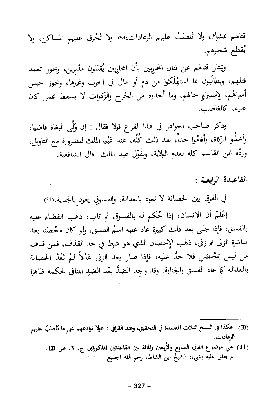 (٣١) هي موضوع الفرق السابع والأربعين والمائة بين القاعدتين المذكورتين جـ ٣. ص ١٢٠. لم يعلق عليه بشيء، الشيخُ ابن الشاط، رحم الله الجميع.