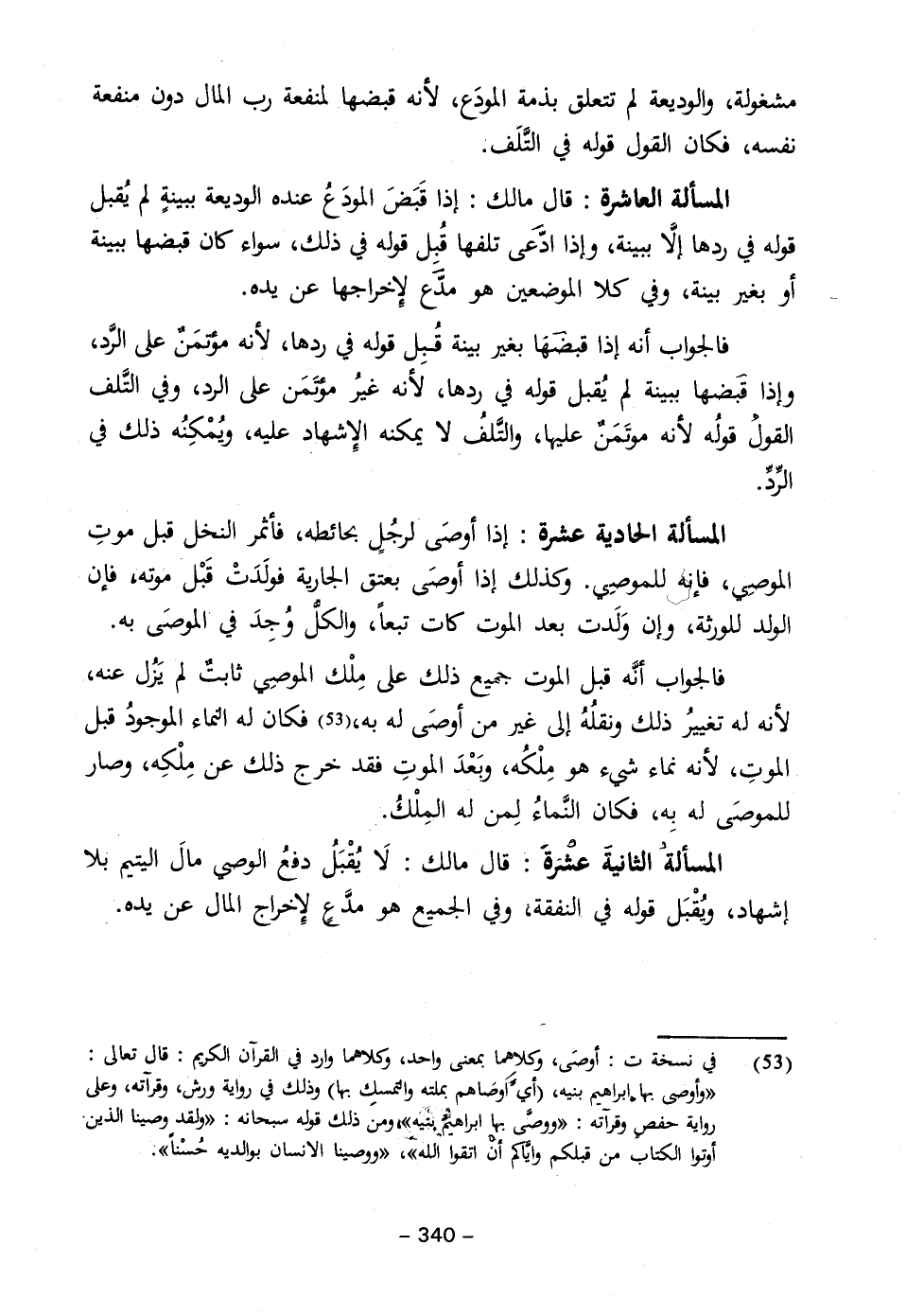 فالجواب أنَه قبل الموت جميع ذلك على مِلْك الموصي ثابث لم يَزُل عنه، لأنه له تغييرُ ذلك ونقلُهُ إلى غير من أوصَى له به، (٥٣) فكان له النماء الموجودُ قبل الموتِ، لأنه نماء شيء هو مِلْكُه، وبَعْدَ الموتِ فقد خرج ذلك عن مِلْكِه، وصار للموصَى له بِه، فكان النَّماءُ لِمن له المِلْكُ.