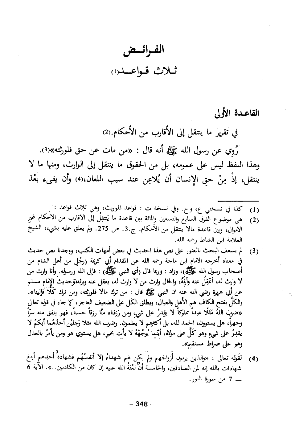 (١) كذا في نسختي ع، وح. وفي نسخة ت: قواعد المواريث، وهي ثلاث قواعد: