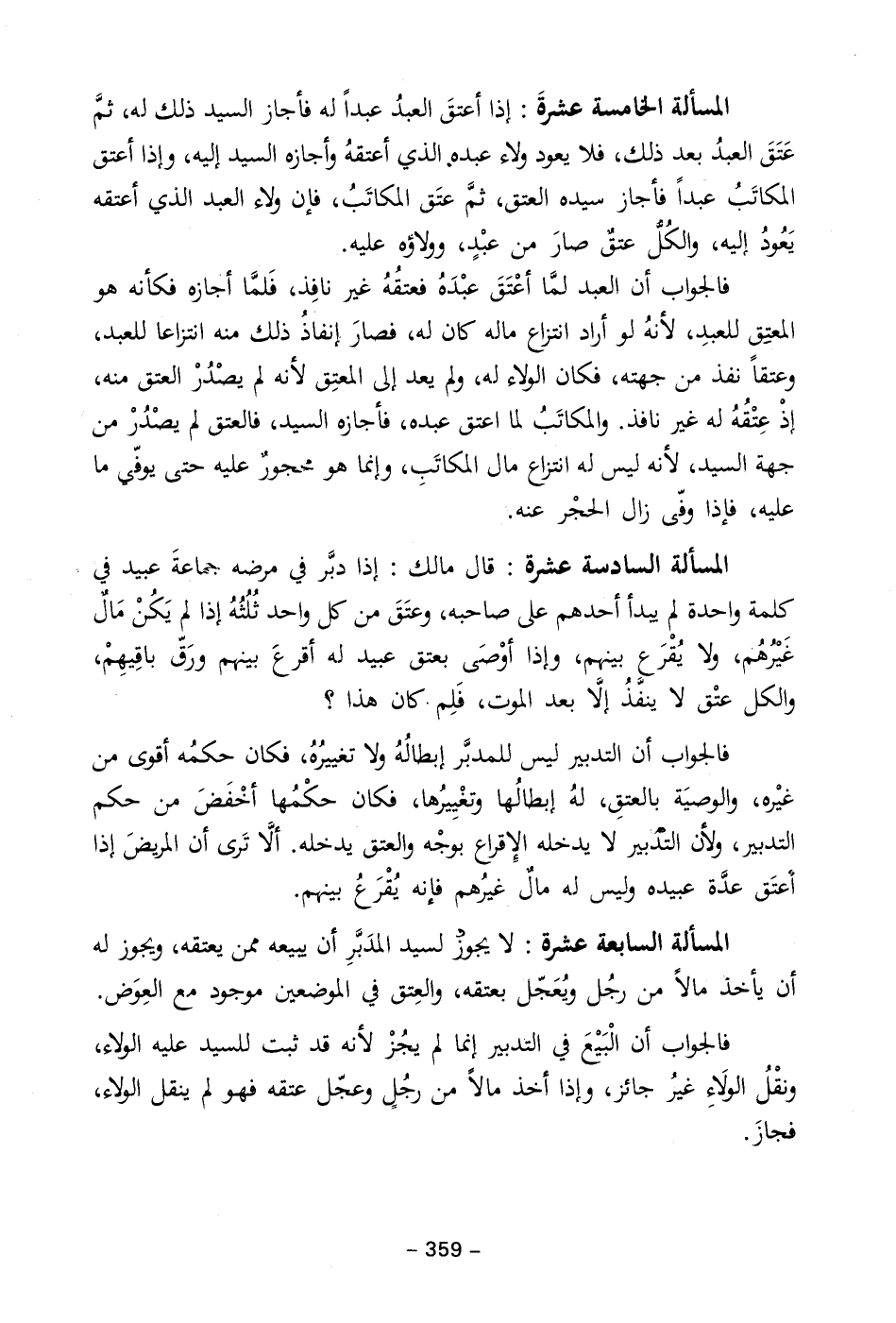 المسألة السابعة عشرة: لا يجوز لسيد المدَبَّرِ أن يبيعه ممن يعتقه، ويجوز له أن يأخذ مالاً من رجُل ويُعَجّل بعتقه، والعِتق في الموضعين موجود مع العِوَض.