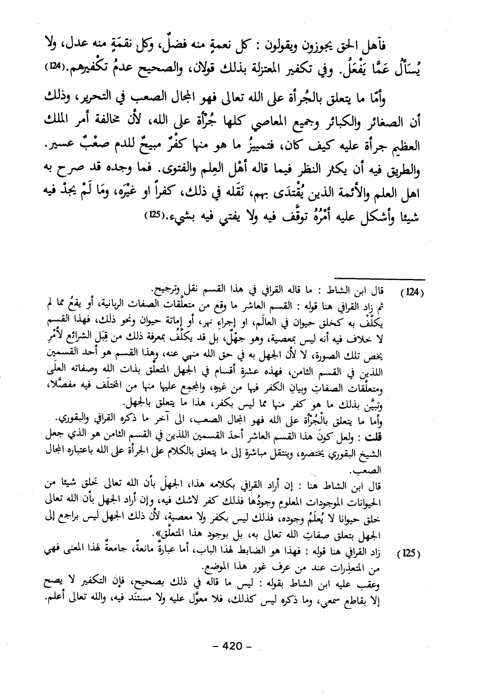 وأما ما يتعلق بالْجُراة على الله فهو المجال الصعب، إلى آخر ما ذكره القرافي والبقوري.