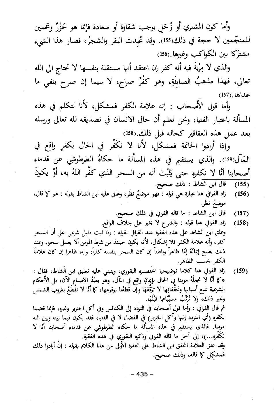 (١٥٧) قال ابن الشاط: ما قاله القرافي في ذلك صحيح.