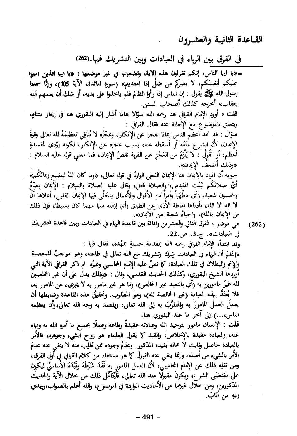 (٢٦٢) هي موضوع الفرق الثاني والعشرين والمائة بين قاعدة الرياء في العبادات وبين قاعدة التشريك في العبادات". جـ ٣. ص.٢٢.
