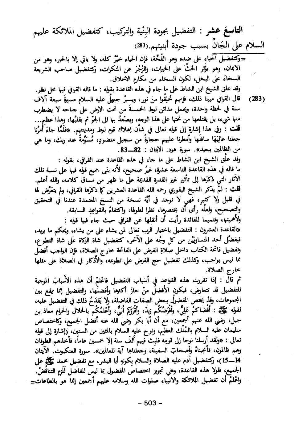 التاسعَ عشر: التفضيل بجودة البِنْية والتركيب، كتفضيل الملائكة عليهم السلام على الجَانِّ بسبب جودة أبنيتهم. (٢٨٣)