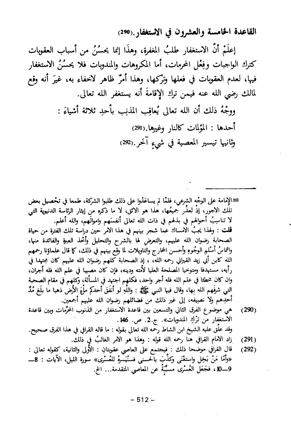 (٢٩٠) هي موضوع الفرق الثاني والتسعين بين قاعدة الاستغفار من الذنوب المحرمات وبين قاعدة الاستغفار من تزكِ المندوبات". جـ ٢. ص. ١٤٦.