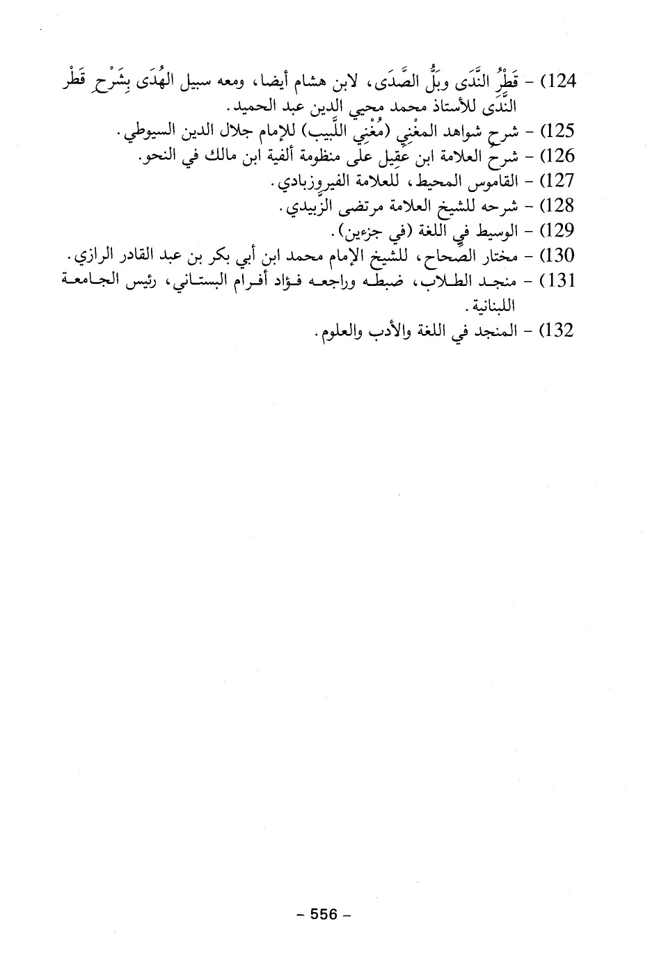 ١٣٢ - المنجد في اللغة والأدب والعلوم.