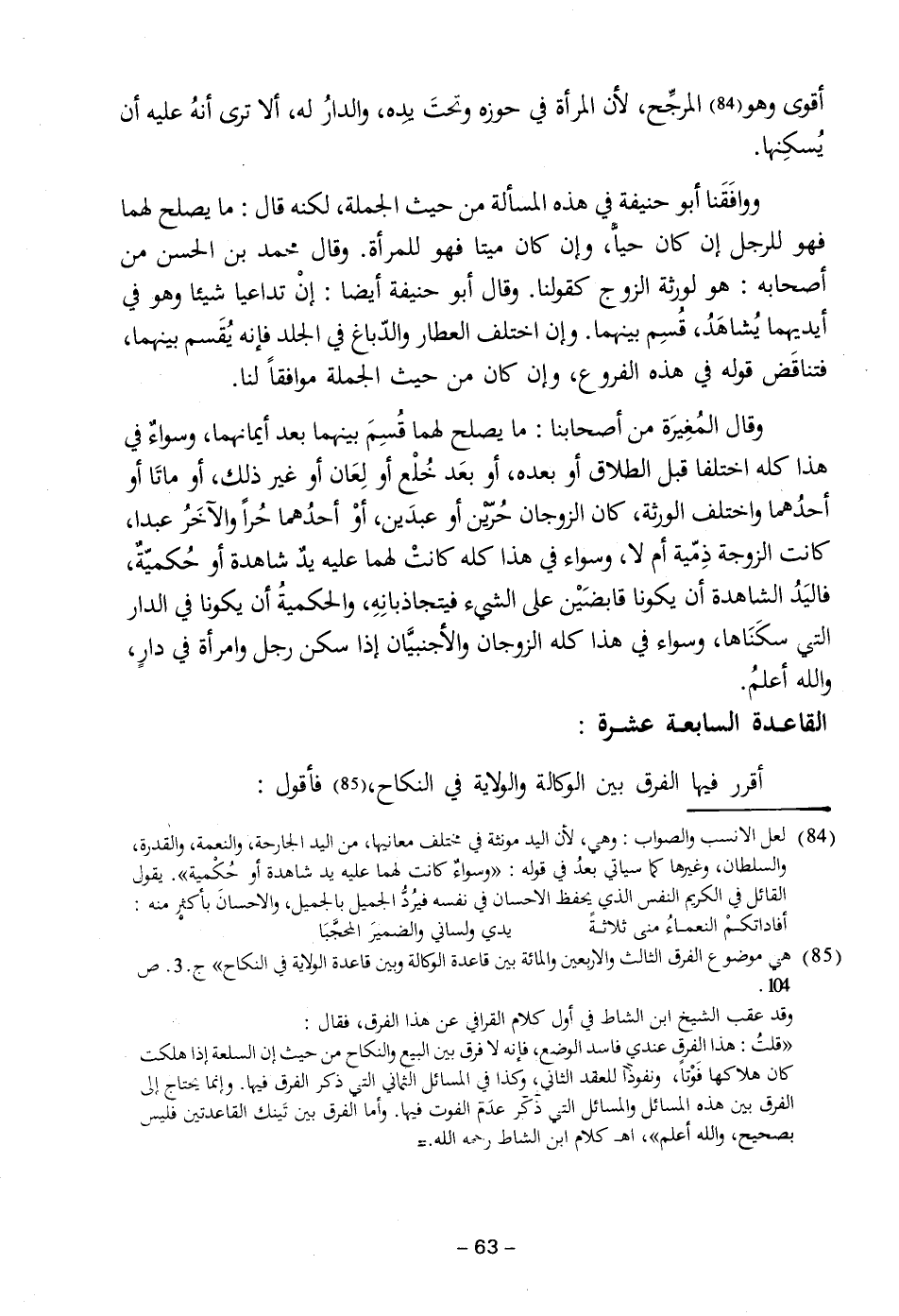 (٨٥) هي موضوع الفرق الثالث والاربعين والمائة بين قاعدة الوكالة وبين قاعدة الولاية في النكاح" جـ ٣. ص ١٠٤.