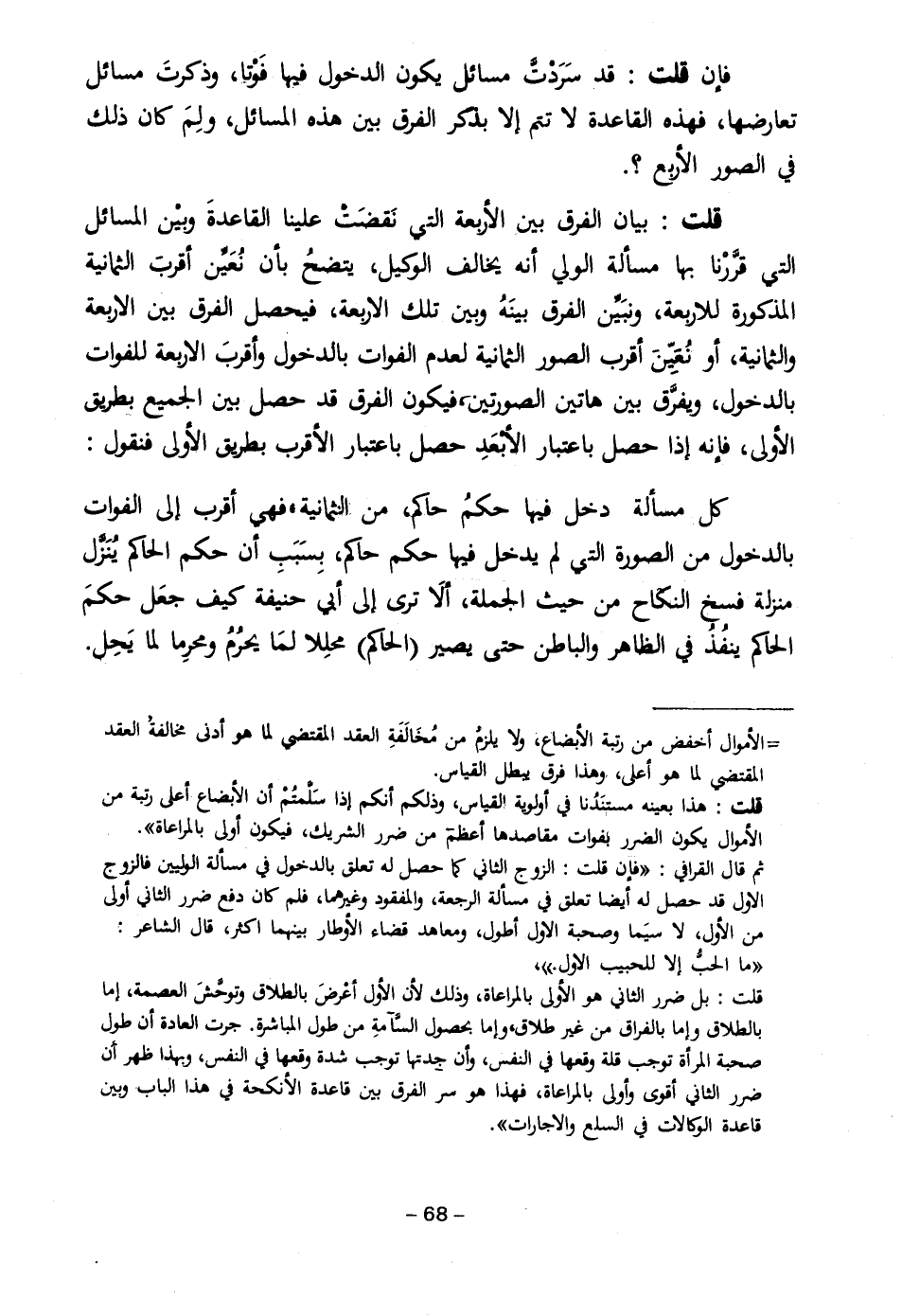 قلت: بيان الفرق بين الأربعة التي نَقضتُ علينا القاعدة وبين المسائل التي قرَّرنا بها مسألة الولي أنه يخالف الوكيل، يتضخ بأن نُعَيِّن أقربَ الثمانية المذكورة للأربعة، ونبيِّن الفرق بينَهُ وبين تلك الأربعة، فيحصل الفرق بين الأربعة والثمانية، أو نُعَيّن أقرب الصور الثمانية لعدم الفوات بالدخول وأقرب الأربعة للفوات بالدخول، ويفرَّق بين هاتين الصورتين، فيكون الفرق قد حصل بين الجميع بطريق الأولى، فإنه إذا حصل باعتبار الأبعد حصل باعتبار الأقرب بطريق الأولى فنقول: