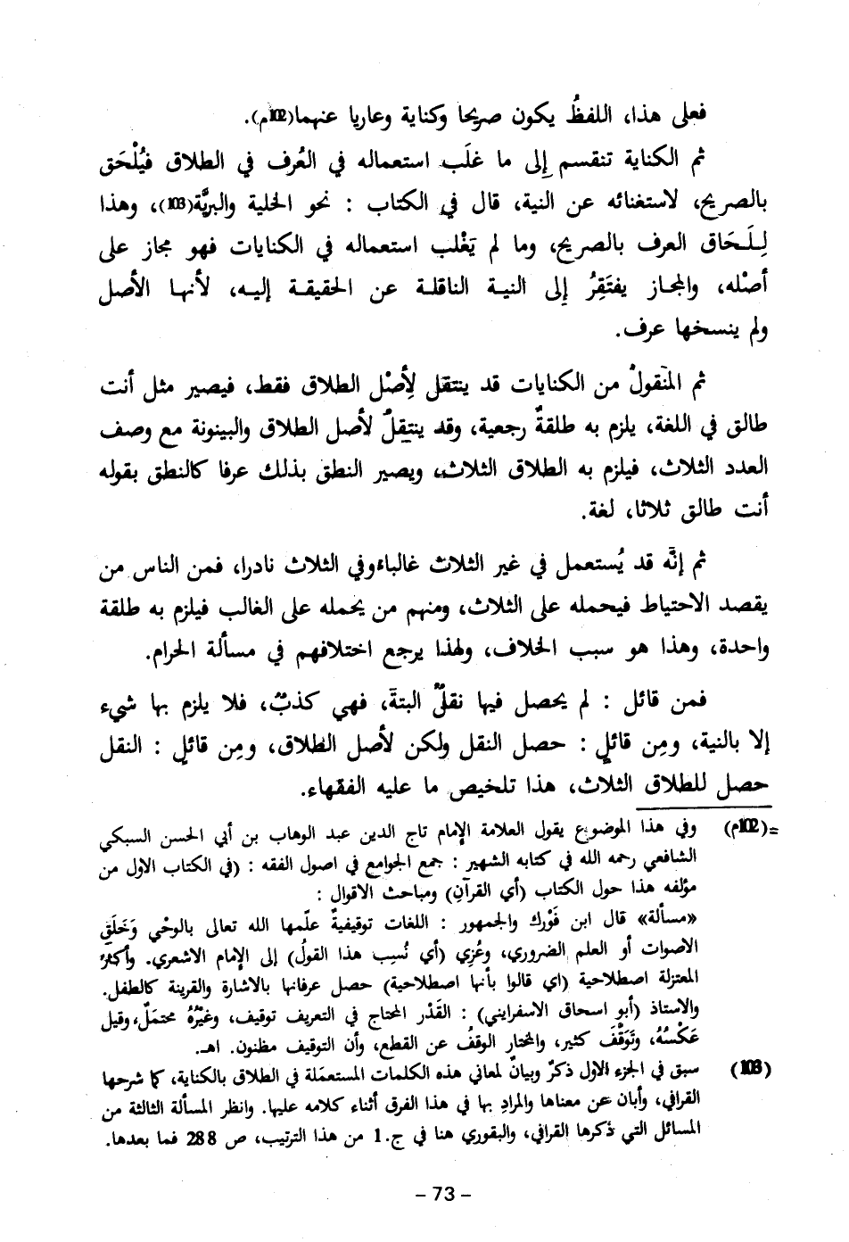 (١٠٣) سبق في الجزء الأول ذكرٌ وبيانٌ لمعاني هذه الكلمات المستعمَلة في الطلاق بالكناية، كما شرحها القرافي، وأبان عن معناها والمرادِ بها في هذا الفرق أثناء كلامه عليها. وانظر المسألة الثالثة من المسائل التي ذكرها القرافي، والبقوري هنا في جـ ١ من هذا الترتيب، ص ٢٨٨ فما بعدها