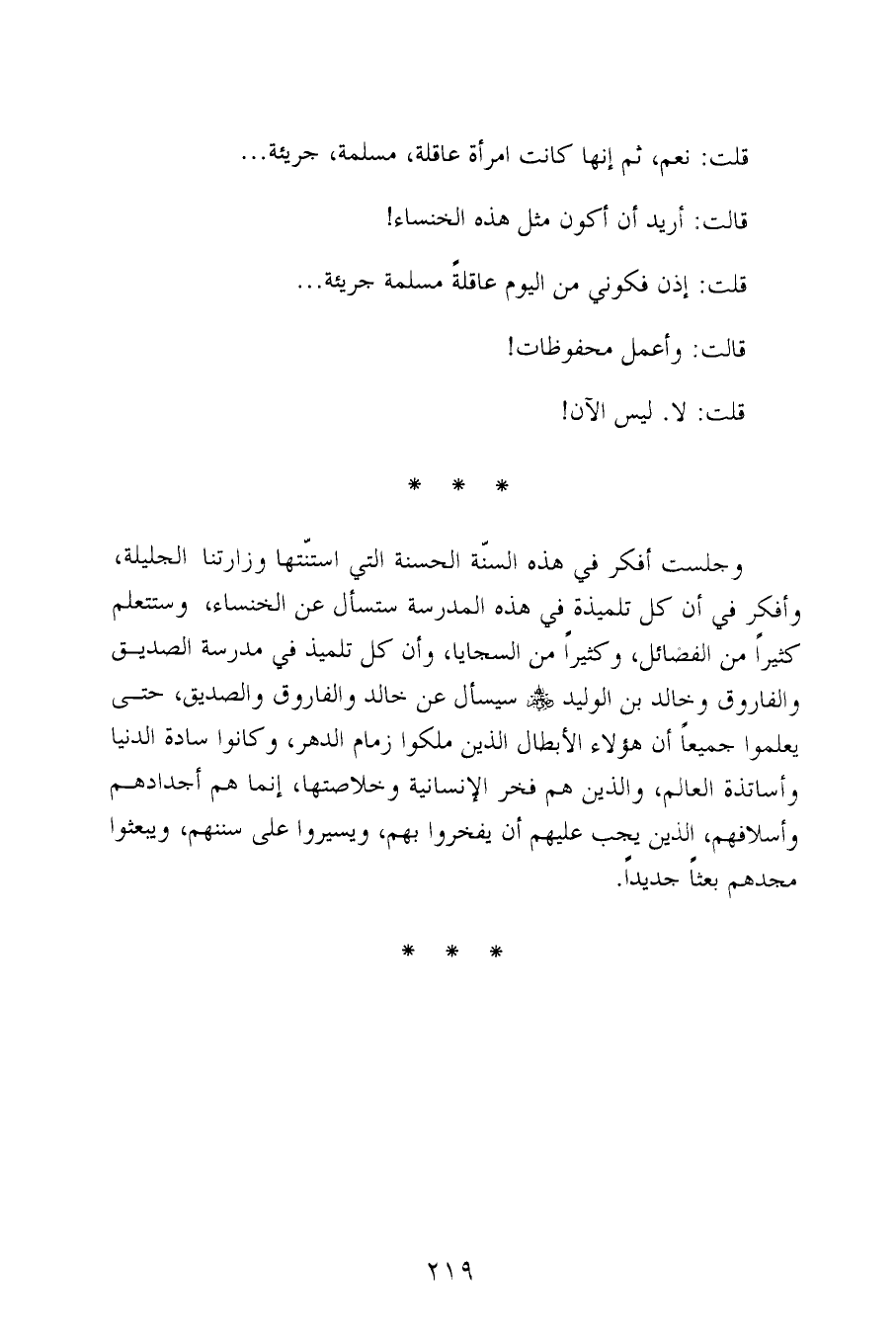 قلت: إذن فكوني من اليوم عاقلةً مسلمة جريئة ...