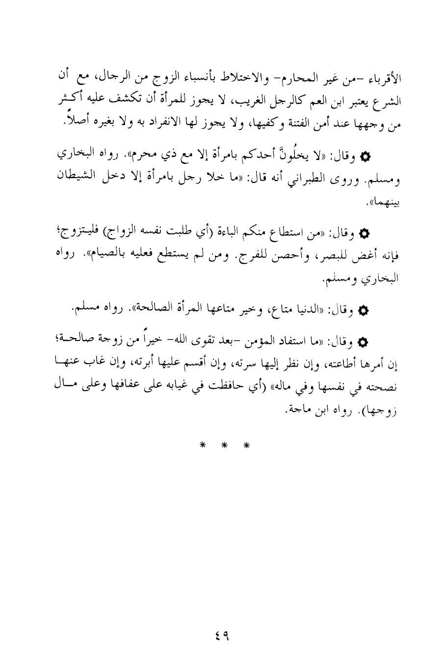 • وقال: «الدنيا متاع، وخير متاعها المرأة الصالحة». رواه مسلم.