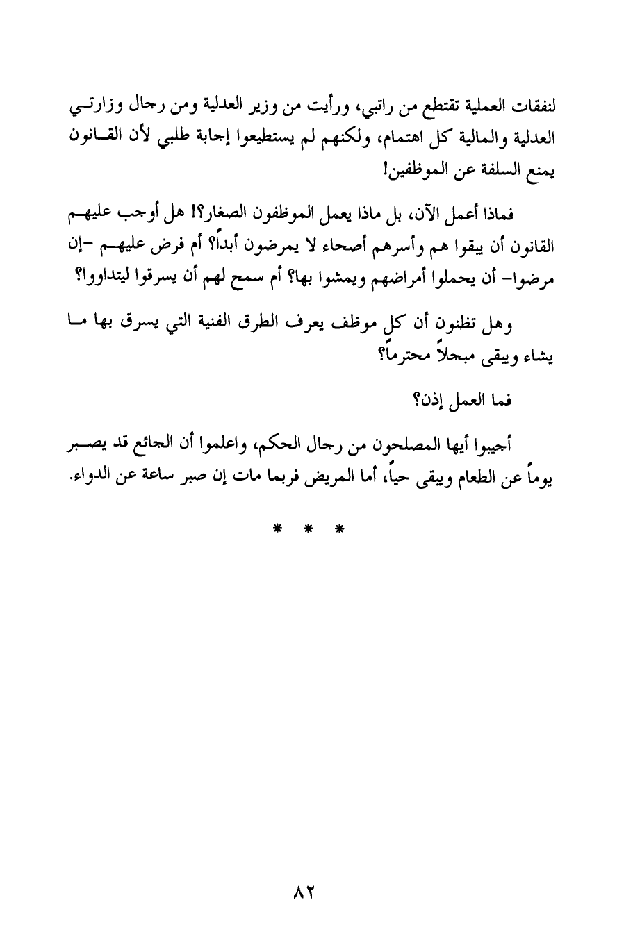 أجيبوا أيها المصلحون من رجال الحكم، واعلموا أن الجائع قد يصبر يوماً عن الطعام ويبقى حياً، أما المريض فربما مات إن صبر ساعة عن الدواء.