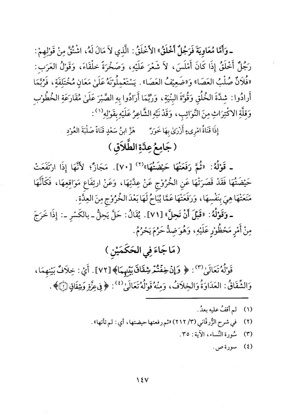- قوله: "ثم رفعتها حيضتها" [70]. مجاز؛ لأنها إذا ارتفعت حيضتها فقد قصرتها عن الخروج عن عدتها، وعن ارتفاع مواقعها، فكأنها منعتها هي بنفسها، ورفعتها عما يباح لها بعد الخروج من العدة.