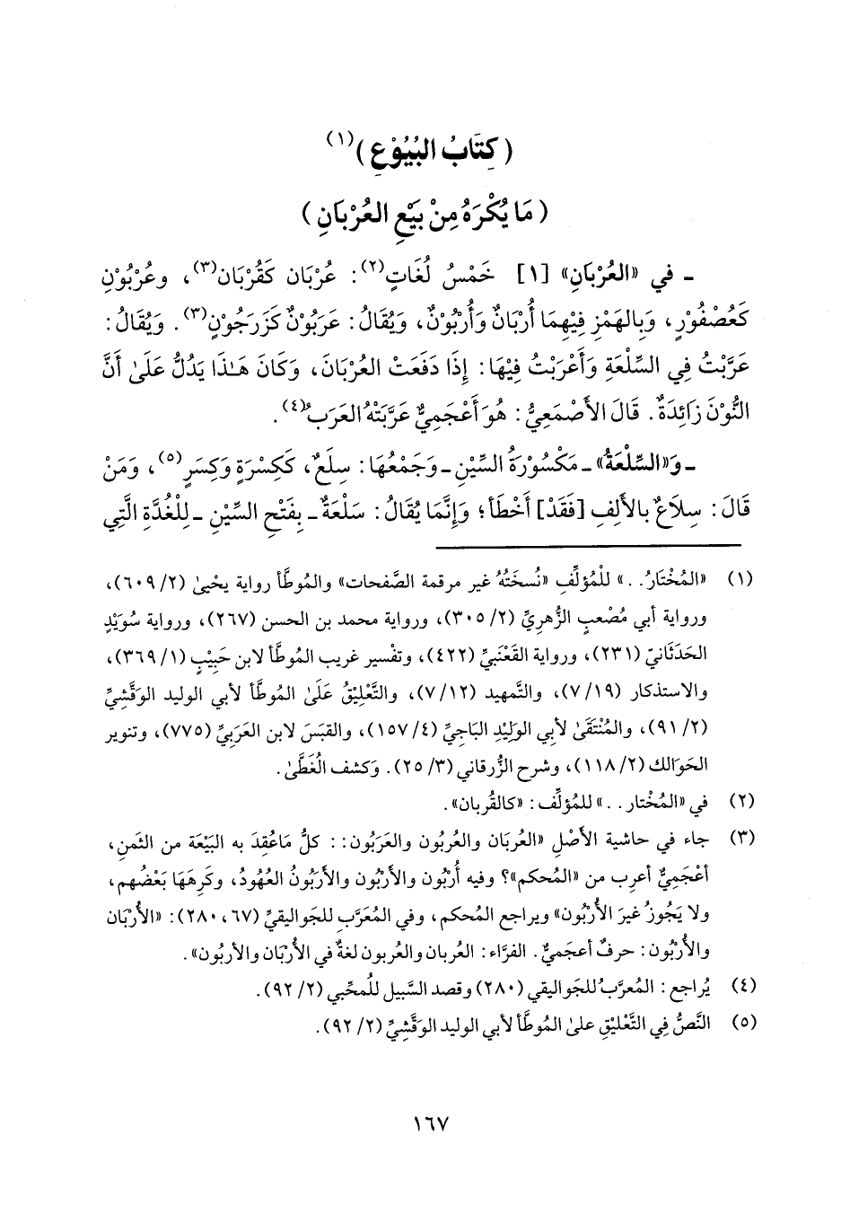 - في "العربان" [1] خمس لغات: عربان كقربان، وعربون كعصفور، وبالهمز فيهما أربان وأربون، ويقال: عربون كزرجون. ويقال: عربت في السلعة وأعربت فيها: إذا دفعت العربان، وكان هذا يدل على أن النون زائدة. قال الأصمعي: هو أعجمي عربته العرب.
