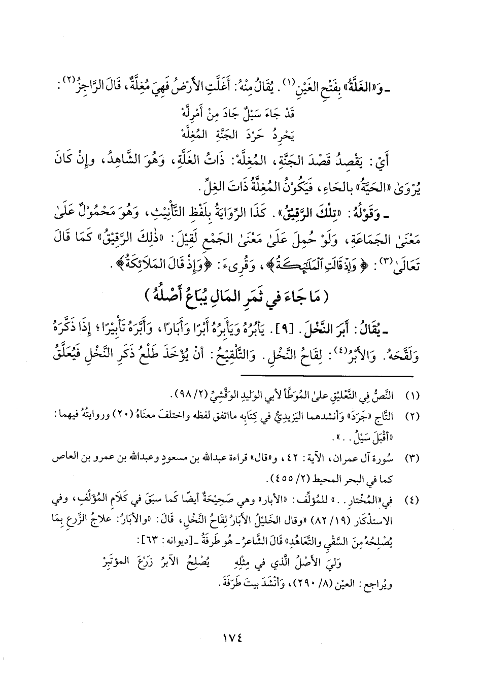 - و"الغلة" بفتح الغين. يقال منه: أغلت الأرض فهي مغلة، قال الراجز:
